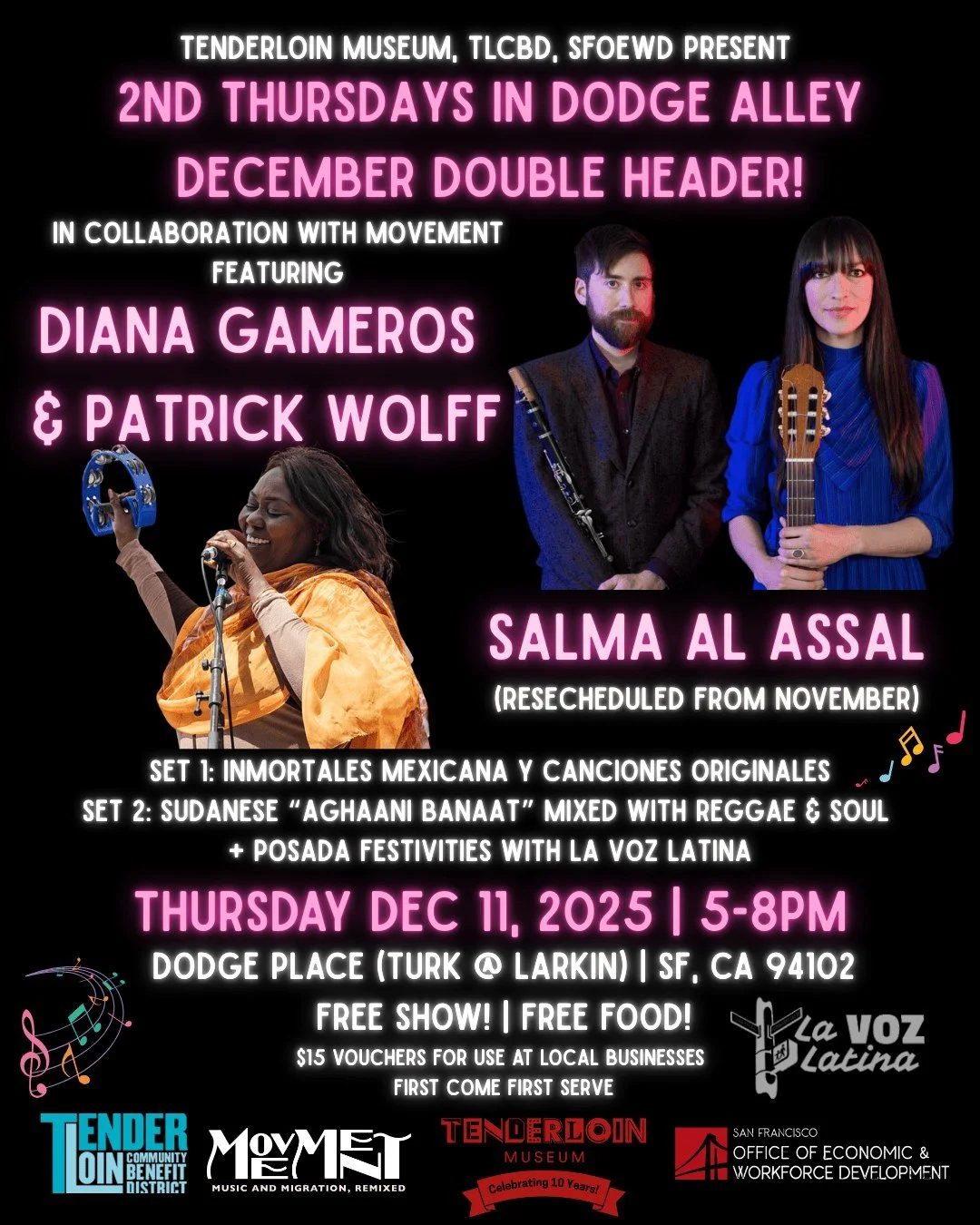 The Tenderloin's rich present-day community, reflected in live music and theatre performances, film screenings, lectures, local artist exhibitions, poetry nights and more!