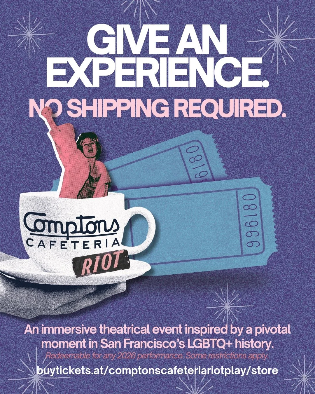 Regular Friday and Saturday performances of The Compton’s Cafeteria Riot resume on January 16, 2026. PURCHASE TICKETS.