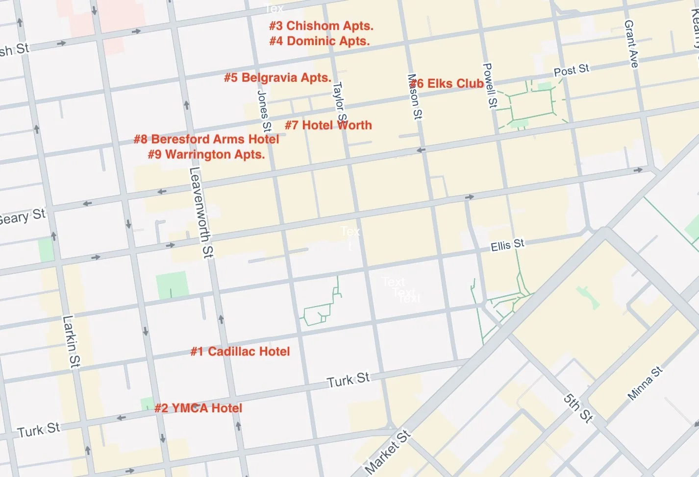 Bay Area architectural legend Frederick H. Meyer realized several of his distinctive, Beaux-Arts inspired buildings in and around the Tenderloin. Seasoned walking tour guide, historian, and emeritus city planning professor Linda Day will highlight 10 Meyer-designed structures, including the old YMCA & the Cadillac Hotel.